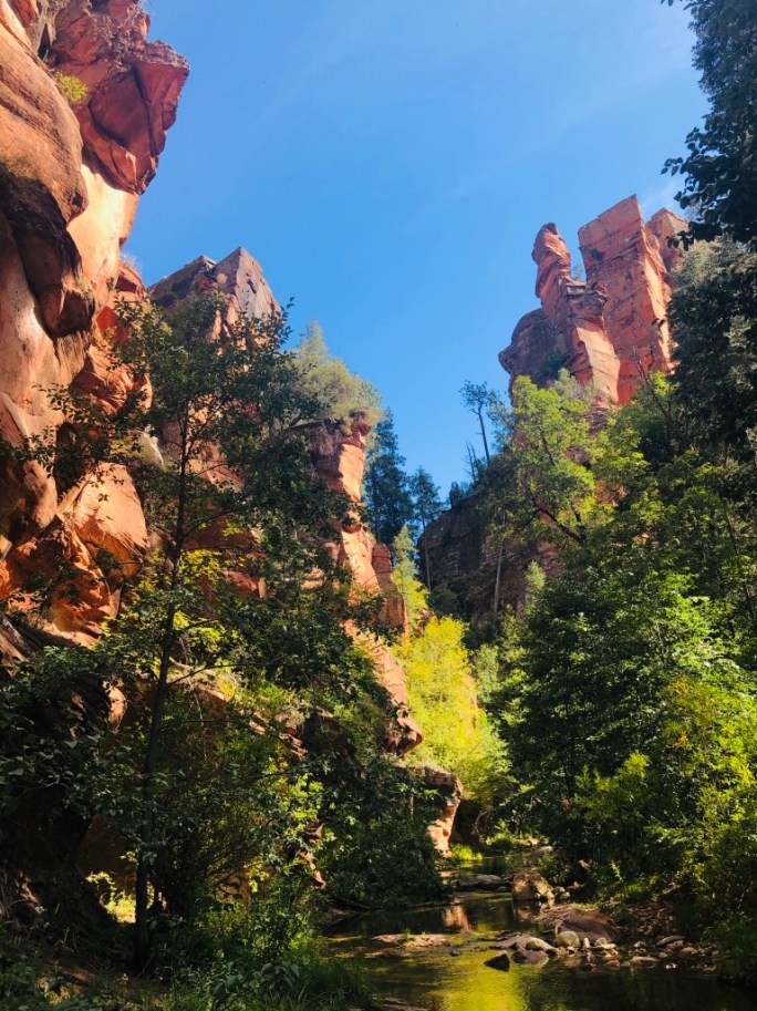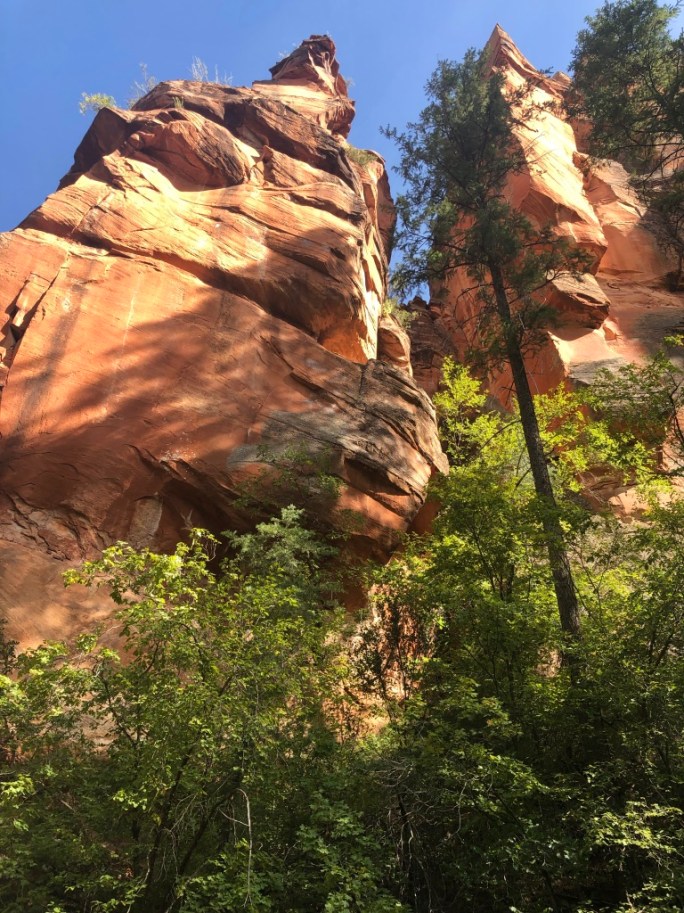 Our second day of hiking was on the West Fork Trail in Oak Creek Canyon. This was a shadier trail that crossed over Oak Creek multiple times so there was an element of possibly getting wet. There wasn’t much elevation gain/loss on this trail so there were several kids hiking. There are several other gentler trails for people who want to experience nature without a grueling hike.