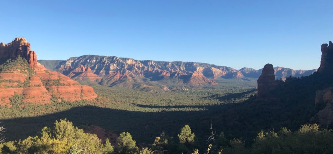 There are great Airbnb’s and bed and breakfasts sprinkled around. Really any place that catches your eye and fits your budget in Sedona, West Sedona or the Village of Oak Creek would be fantastic. My friend Amy G loved her B and B in the Village of Oak Creek just south of Sedona where you could get the scenery of Bell Rock and Courthouse Rock without some of the traffic of Sedona (which has only one main street traversing it). We loved our place called Happy Trails which shared with our friends and was on Panoramic Boulevard near the Airport. It had a terrific view of Thunder Mountain. You can also get the same view by driving up to the Sedona Airport Overlook.