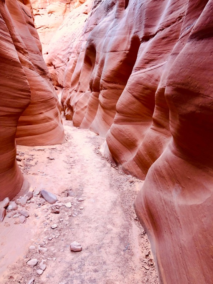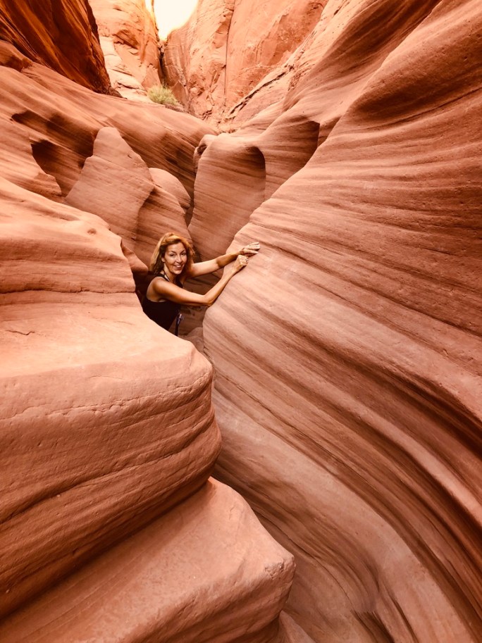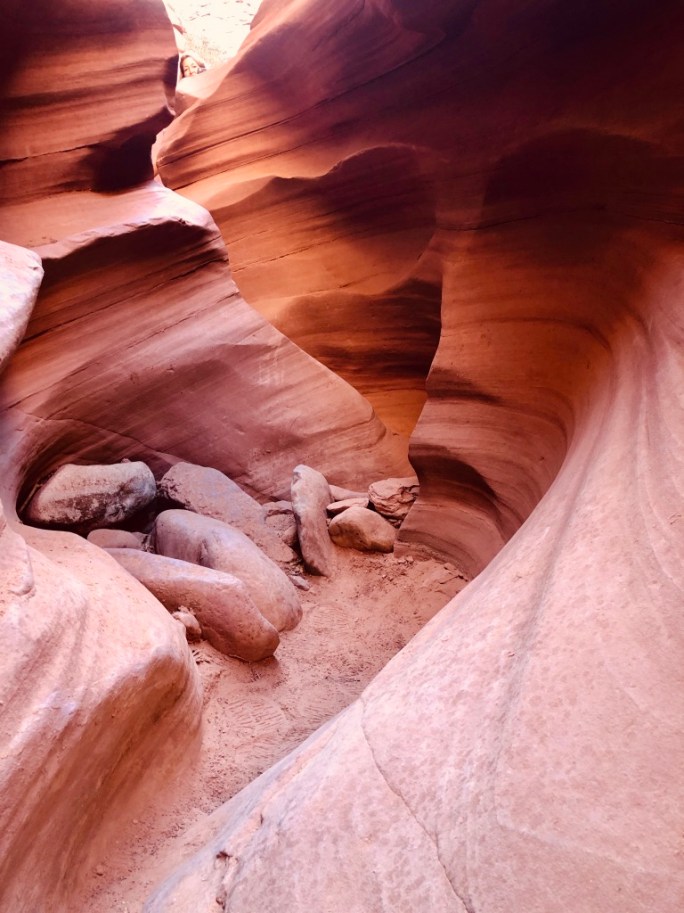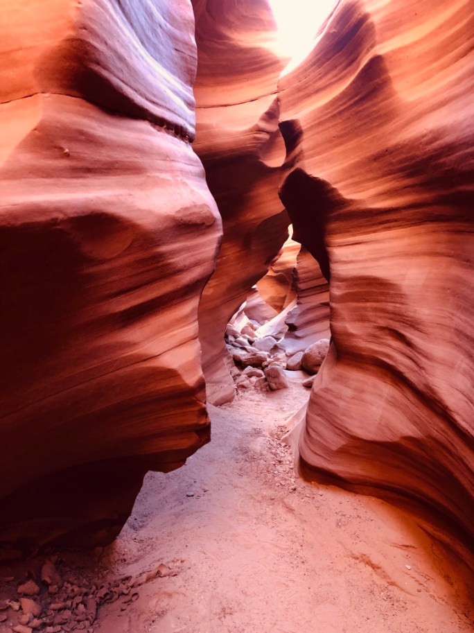 There are two Antelope Canyons in Page, Arizona: the Upper and the Lower. The Upper Canyon is narrower at the top than the base, which is what produces the ethereal light beams casting down onto the floor. The Lower Canyon is wider at the top and has less of the magical light beams, but isn’t as crowded, partly because one must descend down a ladder into it.