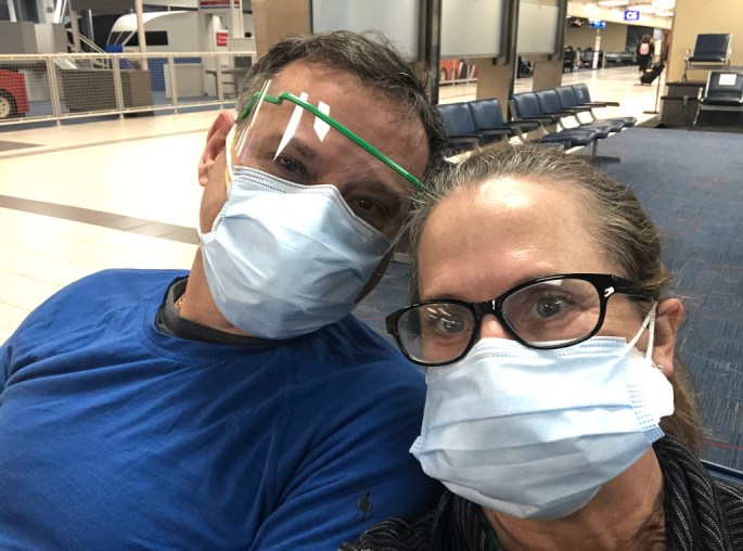 We stayed the night at the St Louis Airport Hilton and took their 4 am shuttle to the airport. The shuttle left early so we were actually at the airport before 4 am and with TSA precheck, we were the first ones through security! People have asked me if it was crowded at the airport, and no, its definitely not when you are the very first persons in the terminal! Everyone was required to wear masks in the airport and on the plane, although there were those who kept pulling their masks off for opening phones and continuous noshing. I had on a N-95 with a surgical mask over it, as well as eye protection because I did not want to catch COVID after making it this far. Since Fareed was fully vaccinated, he always sat between me and anyone else in our airplane row.