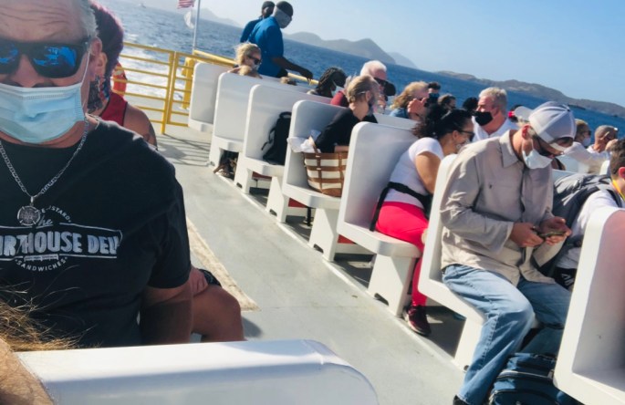 Our ultimate goal was St John, United States Virgin Islands. To get there, it is necessary to fly into St Thomas and then ferry over to St John. Luckily the St Thomas airport was organized. Everyone lined up outside the terminal to show a completed USVI travel portal app with COVID negative verified results before being allowed in. From there, we took a private transfer to the ferry dock, which our villa owner had helped arrange.The ferry over to St John is a short 20 minute ride and all open air, but masks were required.
